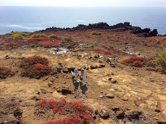 Al llegar a Punta Pitt, comienza una caminata guiada por senderos de origen volcánico que conducen a miradores naturales con vistas espectaculares. Este lugar es único en Galápagos, ya que es el hábitat de las tres especies de piqueros: de patas azules, de patas rojas y de Nazca. Además, es posible observar fragatas y otras aves marinas en su entorno natural.